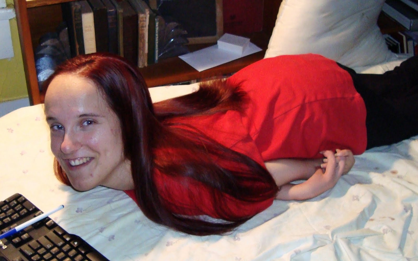 There is no curative treatment for this condition, although parameters have been defined in the last 20 years or so by doctors who actually have an interest in making life more bearable for their patients. I was born about 10 years before these parameters were defined enough to make a difference, so I was more of a guinea pig for my doctors than anything else. I spent the first couple of years of my life in Denver, Colorado, and there was a time when I had to fly once a month to Salt Lake City, Utah, because that was the only children’s hospital in the area equipped to deal with my disability. It is extremely important to treat Arthrogryposis as best as doctors can before the child reaches puberty because the body has not finished developing and it’s easier to loosen up all the tight limbs. I had most of my surgeries before age 12 – by “most” I mean I’ve had somewhere between 17 and 20 surgeries (I lost count) in my 29-year lifetime. It’s not uncommon at all for someone born with this condition. They have to treat each limb at a time. First I had surgery to cut the tendon in my neck because it was too short and I could not pull my head up straight as an infant, then I had clubfoot surgery, then I had surgery to break my thighs and turn my legs into a correct position for sitting rather than the Indian style position, then I have hardware put in my hips to try and stabilize my joints, then the hardware was taken out because it was painful and making me bleed, and then I had my entire spine fused with titanium rods from neck to tailbone, and so on and so forth. Doctors have tried to get me to have surgery on my hands over the years to straighten them out (think of Capt. Hook) but it’s not going to do any good. It would only be for cosmetic reasons and I’m not interested in trying to look “normal” if I’m not going to gain any function out of it. I’m still looking at more surgery on my feet and I’ll be 30 next year. It never ends.